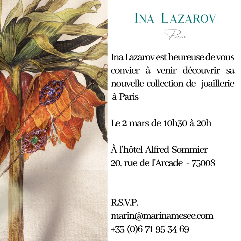 Ina Lazarov is pleased to announce the presentation of its Fine Jewelry and High Jewelry collections in the occasion of the Paris Couture Fashion Week.