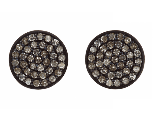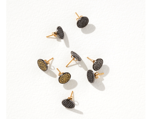 Black diamond studs, silver and 18k yellow gold.