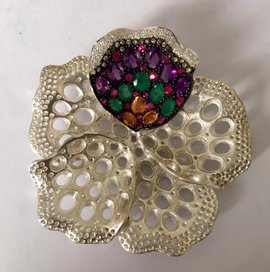 Toutefois, le réel déclic se produit au cours d’un voyage en Inde lors duquel elle découvre l’exubérante beauté et singularité des pierres, telle l’émeraude de Zambie, d’un vert criard et lumineux, devenue le symbole de la marque, ou la spinelle d’un rouge onctueux, deux fois plus rare que le rubis, la tanzanite bleu intense, ou encore - le saphir orange feu.